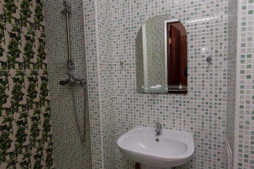 Санузел: умывальник, зеркало, унитаз, душ или ванна, фен.