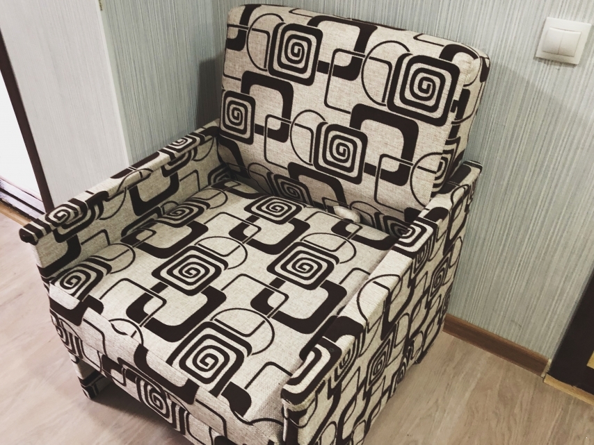 В номере: односпальная кровать (0,9*2 м), прикроватная тумбочка, кресло-кровать, журнальный столик, стул, туалетный стол и зеркало, шкаф, настенное зеркало, вешалка.